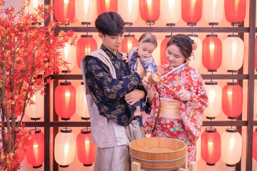 源自日本古代之習俗,父母會在寶寶一歲生日那天準備好一升餅讓孩子背上。(日文中一升與一生同音,象徵一生都有吃不完的餅,祝賀他健康成長、衣食無缺)